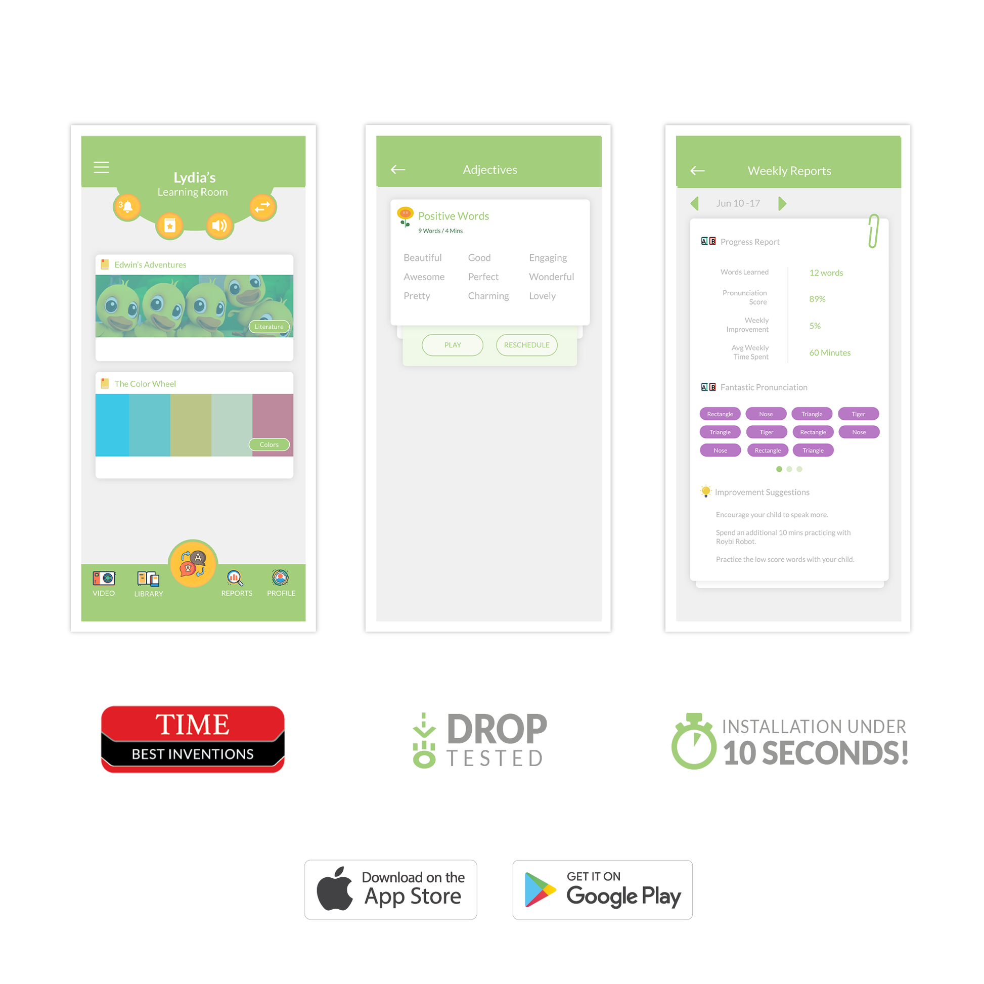 - APP & REPORT - Schedule, Manage, and Track your child¡¯s lessons & progress throughout their educational journey. Use our free iOS or Android app for full content control and detailed progress reports including pronunciation scores.